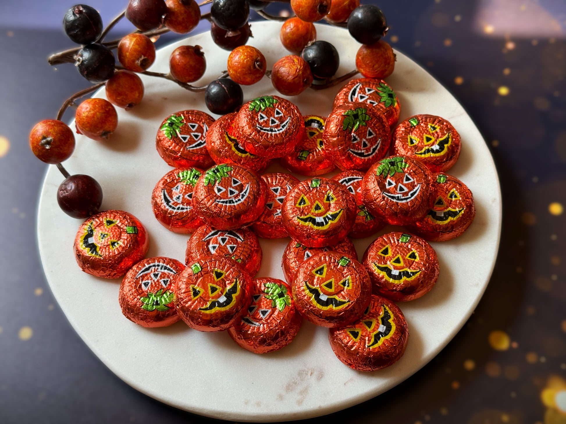 Perfect for your candy dish and for little goblins. No need to terrorize your taste buds. These milk chocolate discs wrapped in the colorful cut outs of your favorite pumpkin fright melt in your mouth. Just add a little tasty fright to your cauldron and you are ready to celebrate!