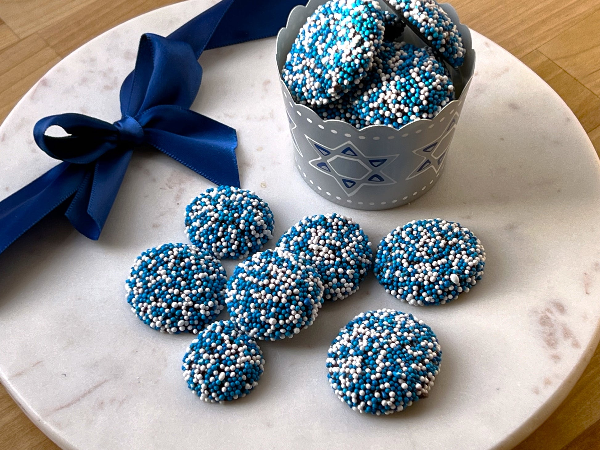 These old time favorites are irresistible. Decorated in traditional colors tied up with a blue ribbon!